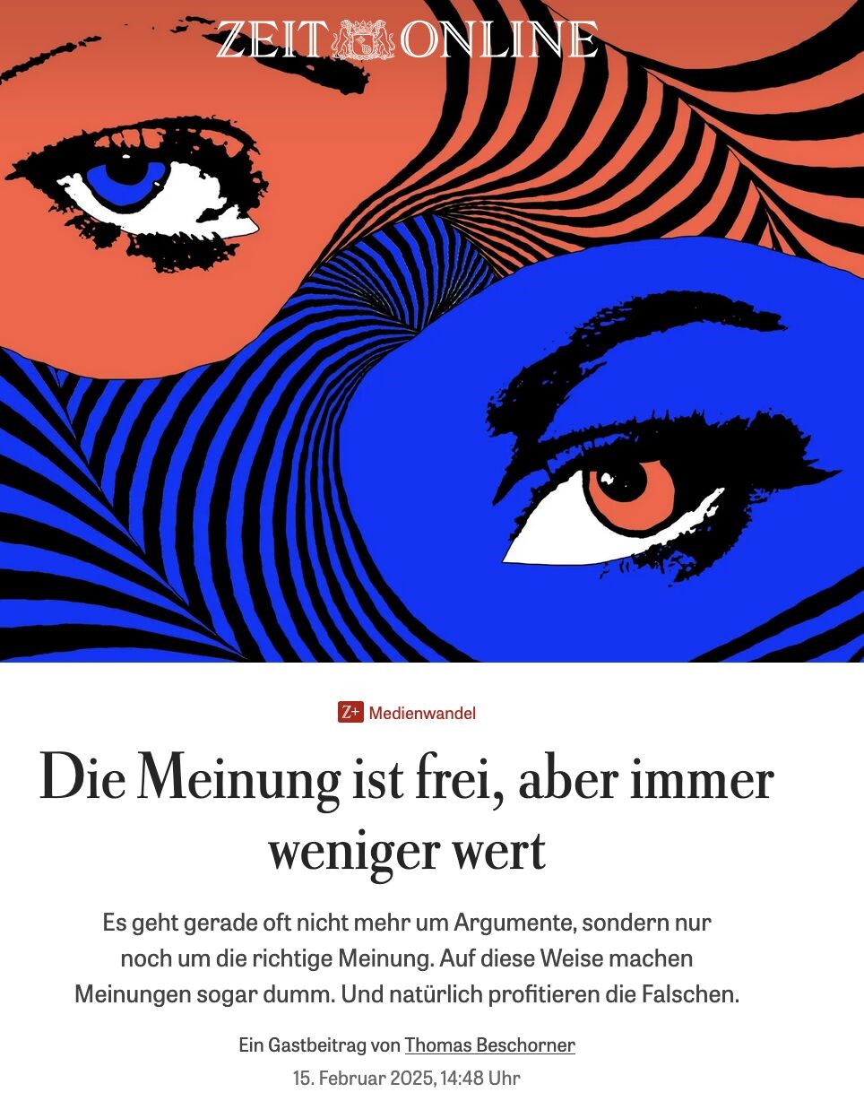“My opinion, your opinion, period!” doesn't get us anywhere. What's more, free societies should be wary of opinion absolutism. Social media, as well as some right-wing conservative and libertarian media houses (the names of the horse and rider are mentioned in the text) are doing democracy a disservice with their opinion salad.
